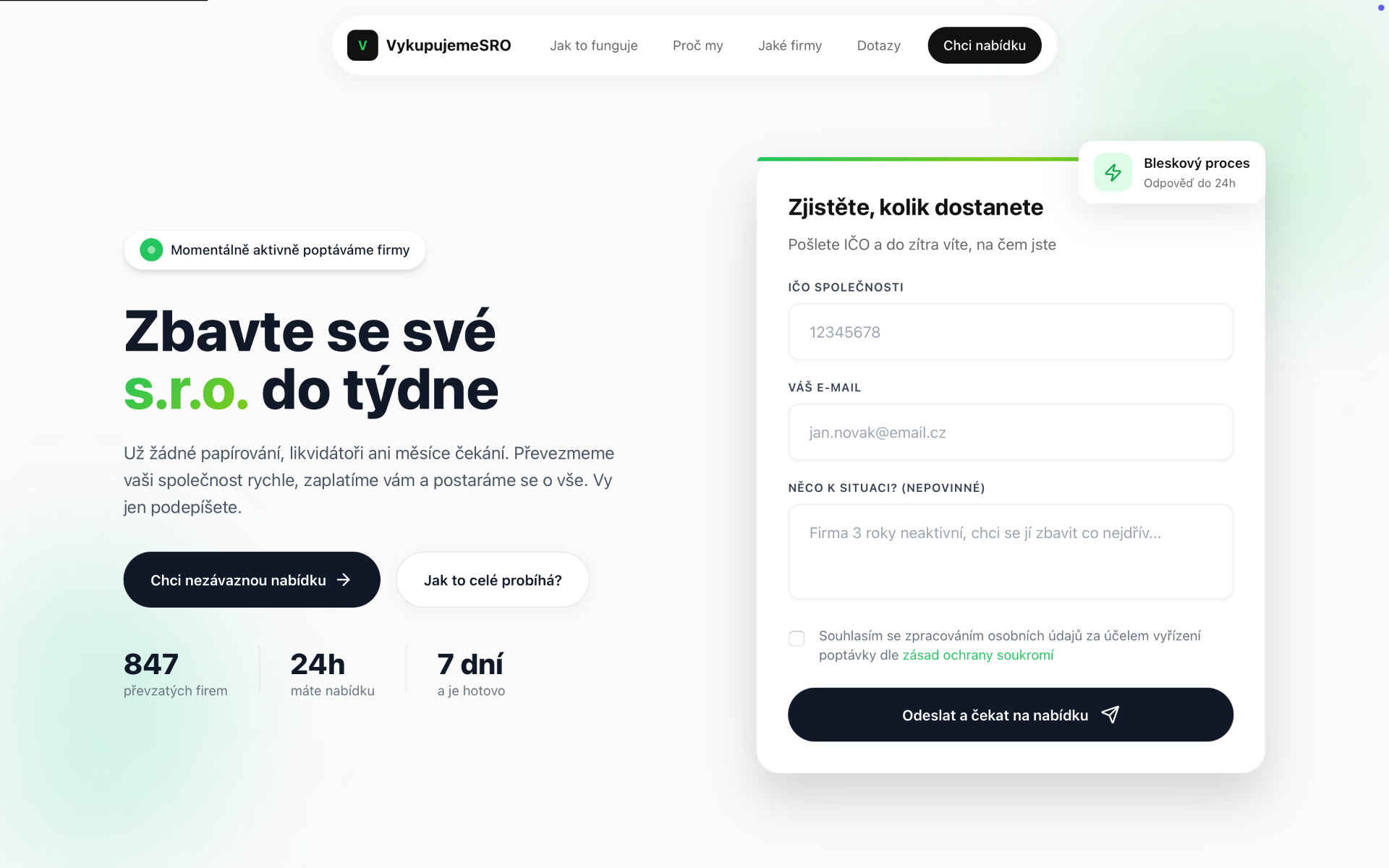 VykupujemeSRO – web pro rychlý výkup s.r.o.
